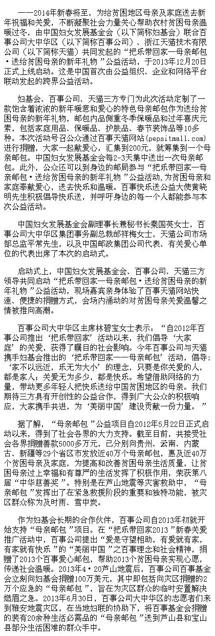 “把乐带回家—母亲邮包 送给贫困母亲的新年礼物”公益活动正式启动
