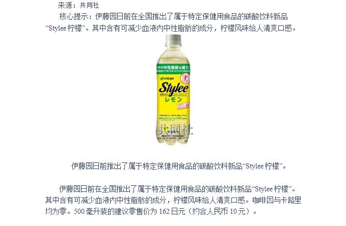 日本伊藤园发售减脂碳酸饮料新品