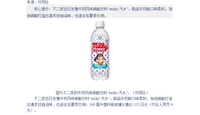 不二家推出牛奶风味碳酸饮料