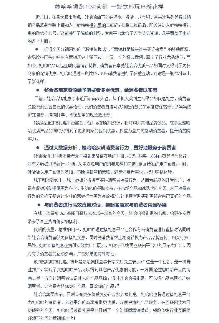娃哈哈领跑互动营销 一瓶饮料玩出新花样