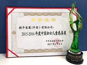2017年4月8日,中华全国妇女联合会(以下简称全国妇联)、中国妇女发展基金会、中国儿童少年基金会在京举行了“中国妇女儿童慈善奖(2015-2016)”表彰大会。作为一直践行公益慈善,关爱婴幼儿健康的企业,雀巢“幸福万家•母婴1000天优养千日,优护一生营养健康教育项目健康行动”项目在此次大会中获得“中国妇女儿童慈善奖”。该奖项每两年颁发一次,旨在表彰推动中国妇女儿童公益慈善事业发展做出贡献的爱心单位和个人。