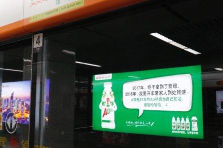 2018年拉开了序幕,这是许下新年愿望,做新年计划的时刻。在杭州新开通的地铁2号线、4号线,出现了娃哈哈AD钙奶与以往风格不太一样的广告。画面里展示了不同个体的新年愿望,如提升单词词汇量准备出国的大学生,写出更受欢迎的稿子的新媒体小编,带领团队变得更优秀的团队负责人,成为孩子的坚强后盾的新晋辣妈……他们的共同身份是在AD钙奶陪伴下长大的80后、90后、95后。这些愿望,也来自他们的真实生活。