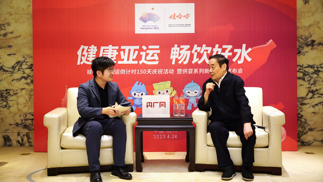 宗庆后:现在我们搞了很多的赛事献礼亚运,同时我们也赞助一些运动员预赛,熟悉场地,希望他们能够在亚运会当中,能够取得好的成绩,同时我们也在全国各地,在大学里都在开展各种的线下活动。希望能够让全国人民关注亚运,让亚运办得更好,同时也能够欣赏我们杭州,欣赏我们的企业。