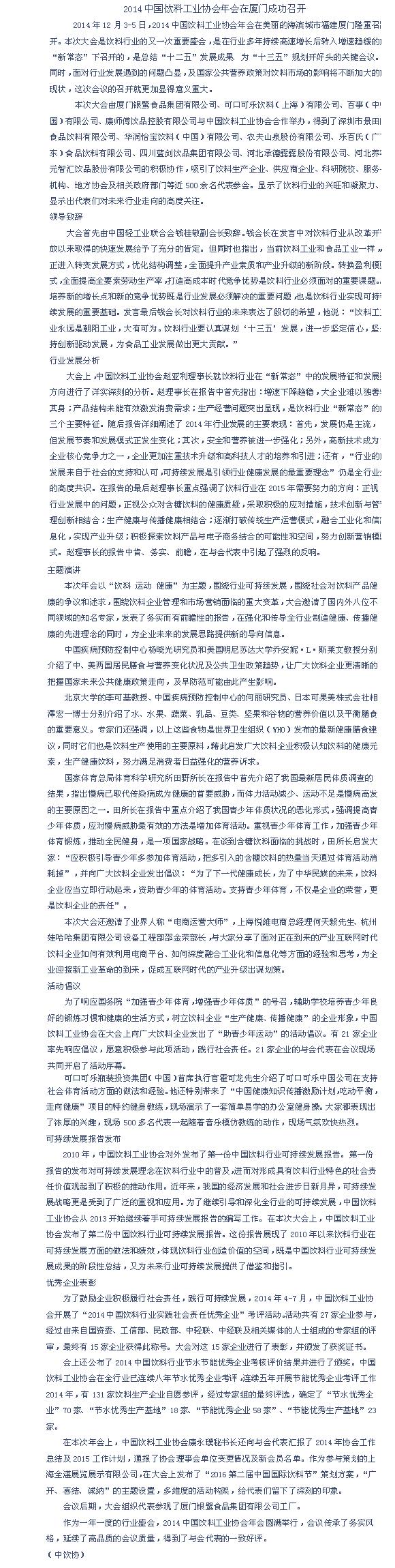 2014中国饮料工业协会年会在厦门成功召开