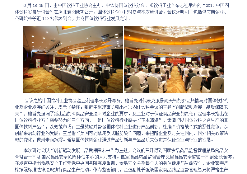 “创新驱动发展 品质保障未来”——2015中国固体饮料发展研讨会成功在襄阳召开