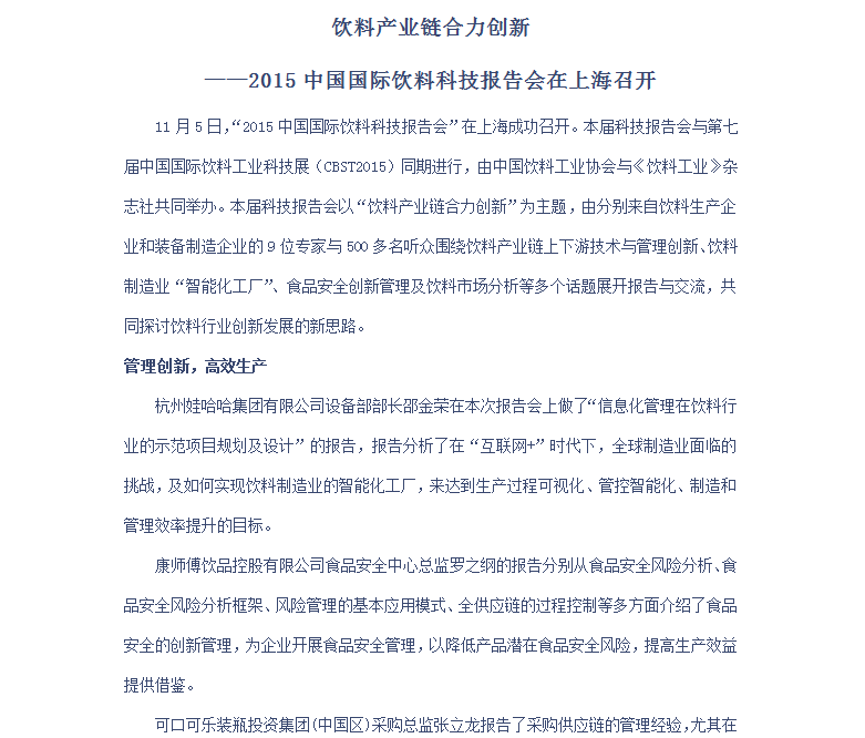 2015中国饮料工业协会四届六次副理事长扩大会议顺利召开
