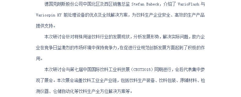2015中国特殊用途饮料发展研讨会在上海成功召开