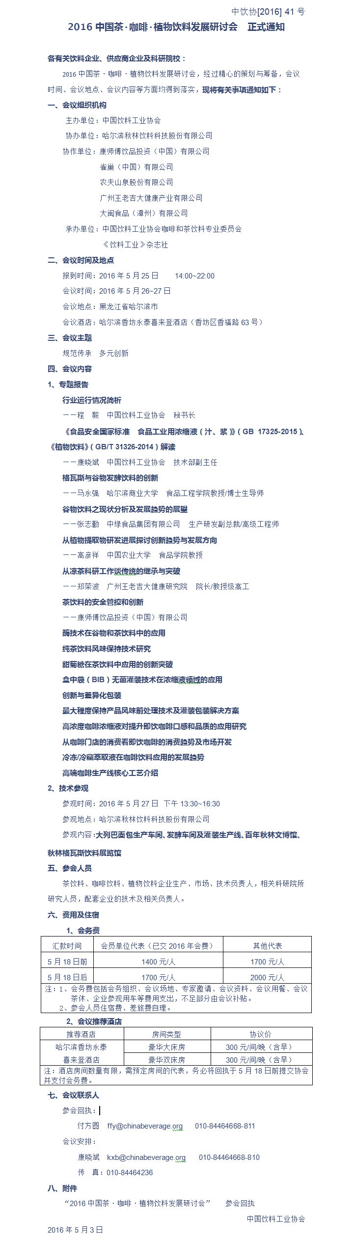 2016中国茶咖啡植物饮料发展研讨会正式通知