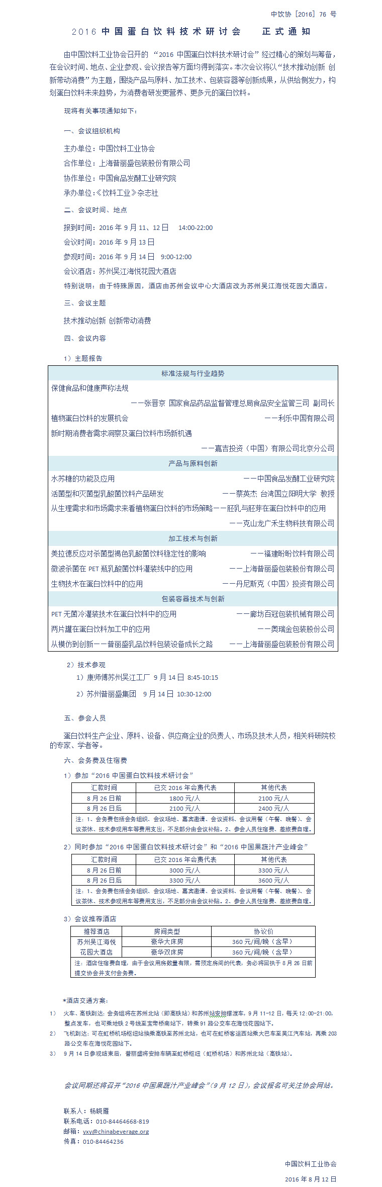 2016中国蛋白饮料技术研讨会正式通知