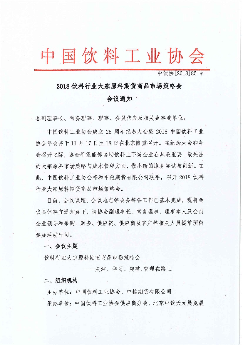 2018饮料行业大宗原料期货商品市场策略会会议通知