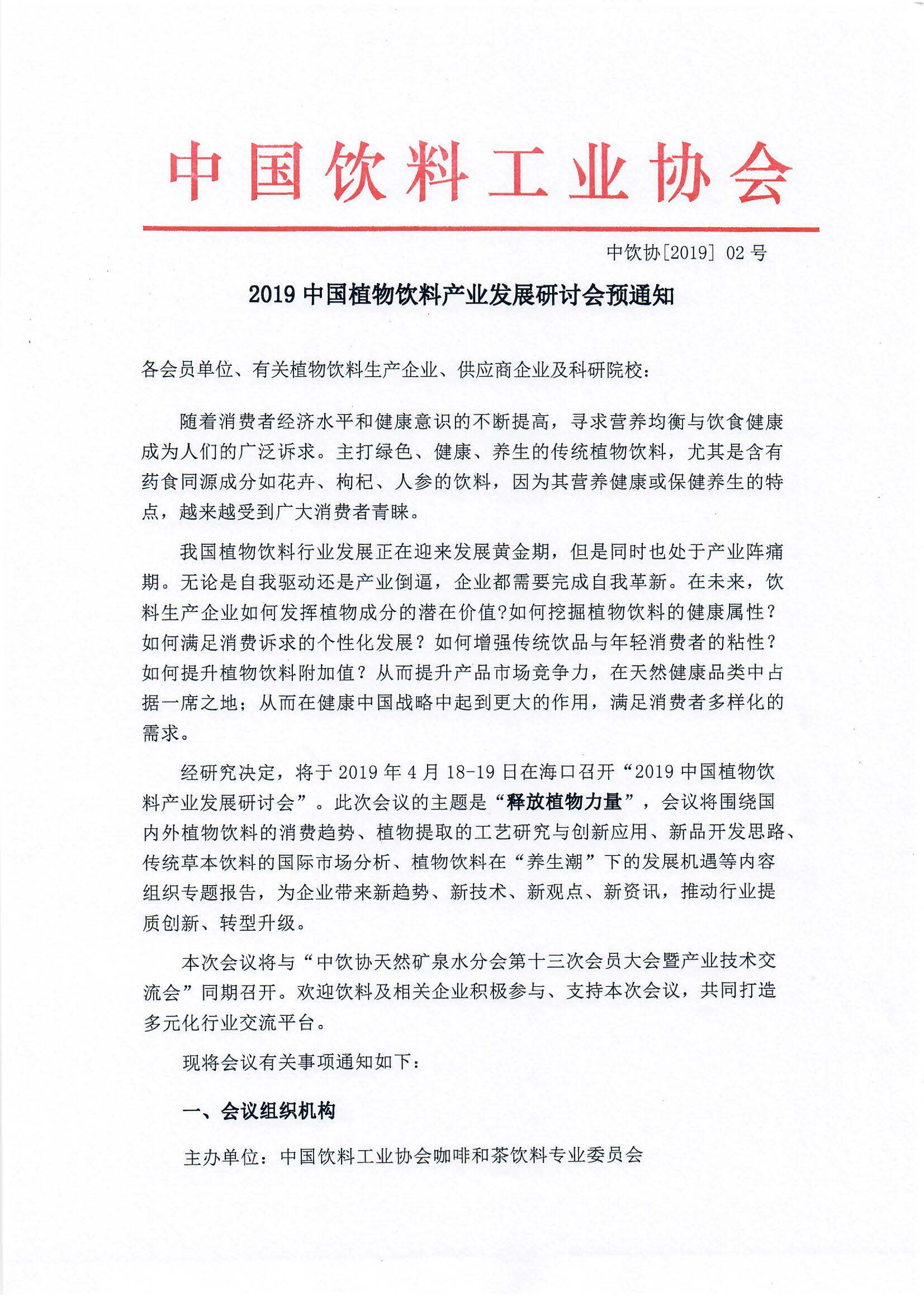 2019中国植物饮料产业发展研讨会预通知