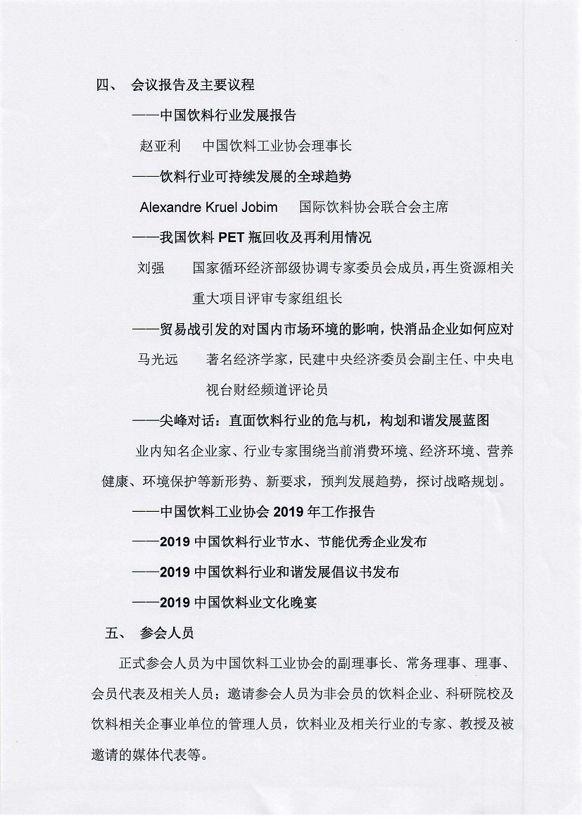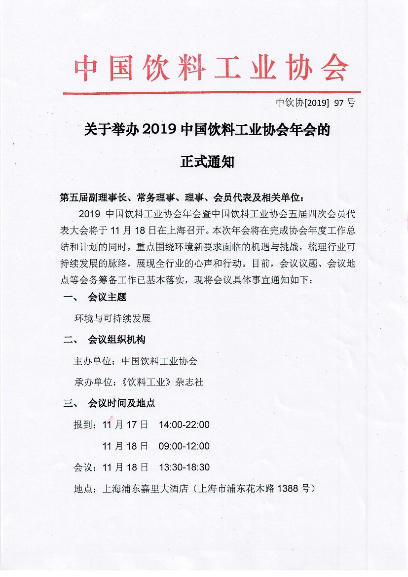2019中国饮料工业协会年会正式通知