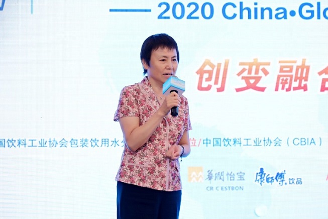 中国饮料工业协会理事长、中饮协包装饮用水分会会长赵亚利为大会致辞