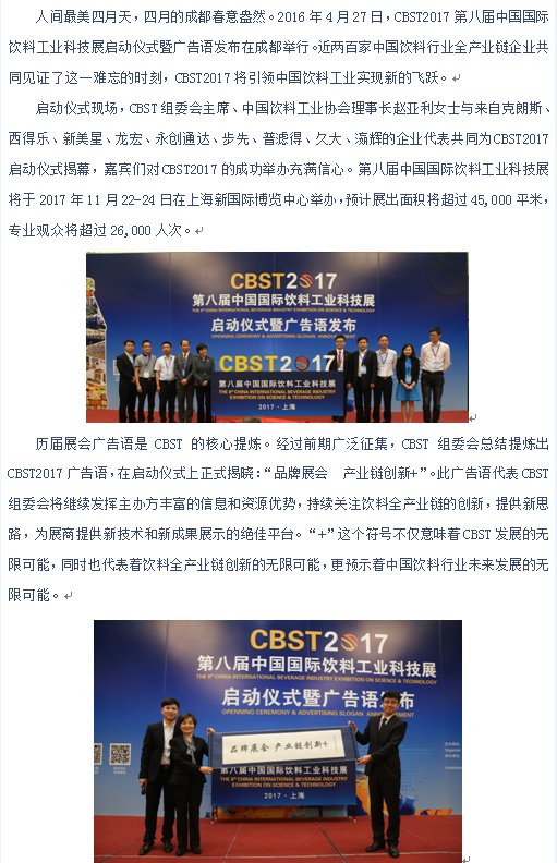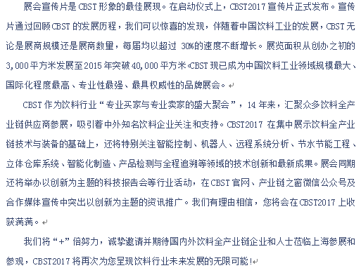 CBST关注创新 助力饮料工业前行