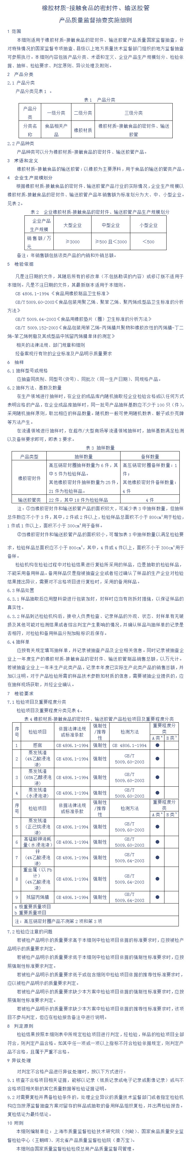 接触食品的消毒剂产品质量监督抽查实施细则