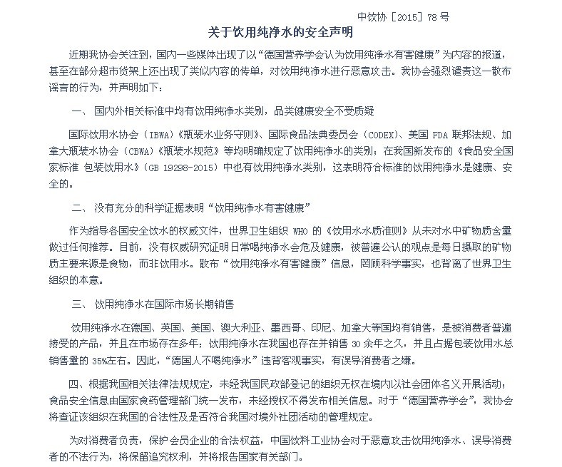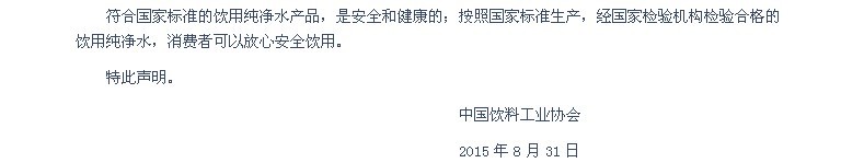 关于饮用纯净水的安全声明