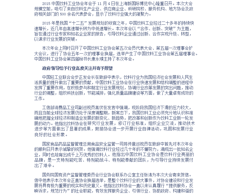 2015年中国饮料工业协会年会在上海成功召开