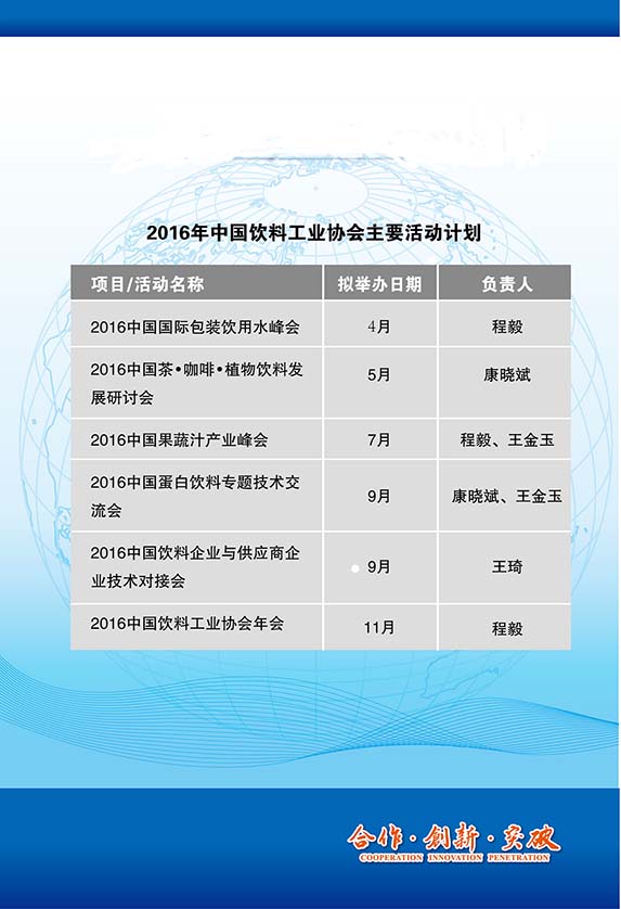 2016年中国饮料工业协会主要活动计划