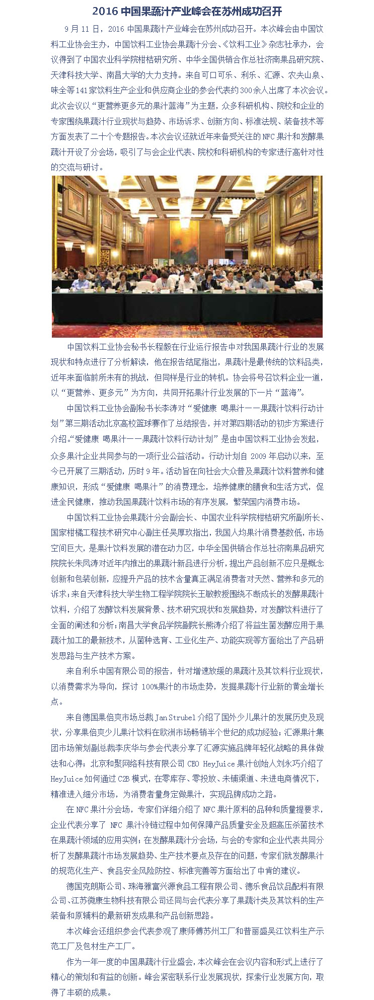 2016中国果蔬汁产业峰会在苏州成功召开