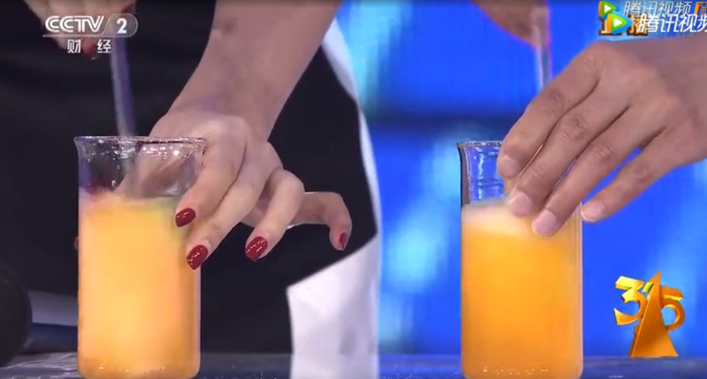 不久前,一段“饮料色素实验”的视频在网上流传,引发网友关注。视频中的实验者拿类似纸巾的白色纸张放在橙色的饮料中,搅拌后饮料变透明,而“纸巾”吸附了色素变为橙色。这真的是饮料色素超标造成的吗?在一年一度的中央电视台“315晚会”上,央视对此特别发布了预警:橙色饮料中放入“纸巾”,搅拌后饮料颜色变浅,不是因为色素超标,是由于使用的“纸巾”是吸附力超强的色母片!你现在才恍然大悟吗?