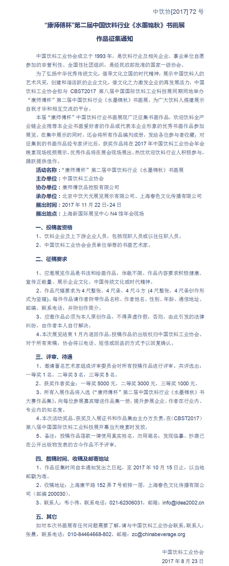“康师傅杯”第二届中国饮料行业《水墨锦秋》书画展