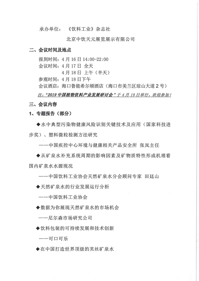 中国饮料工业协会天然矿泉水分会第十三次会员大会暨产业技术交流会正式通知