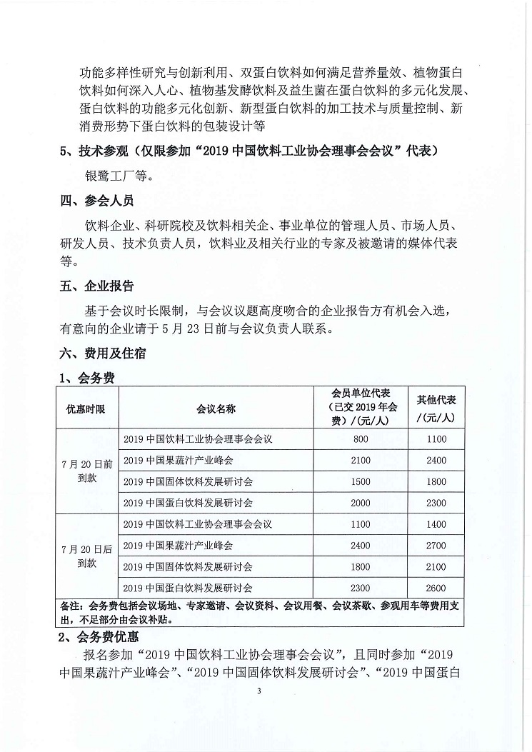2019饮料协会理事会、果蔬汁会、固体饮料会、蛋白饮料会预通知