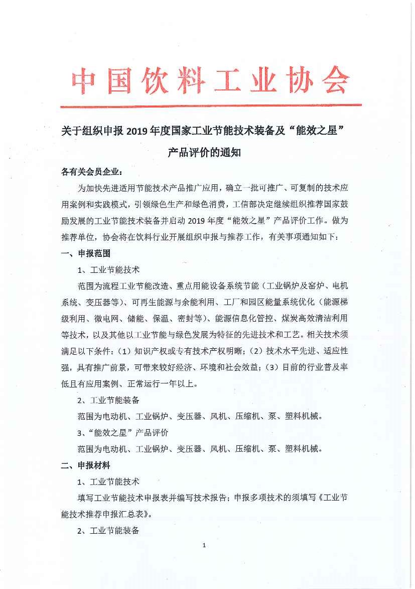 关于组织申报2019年度国家工业节能技术装备及“能效之星”产品评价的通知