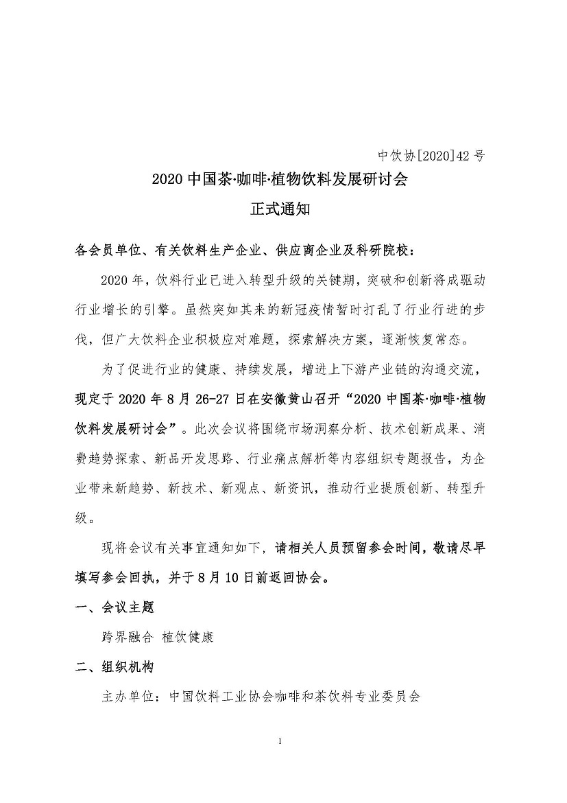 2020中国茶咖啡植物饮料发展研讨会-正式通知