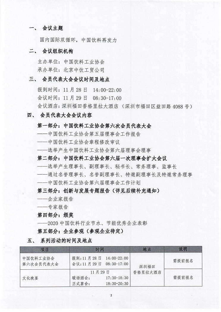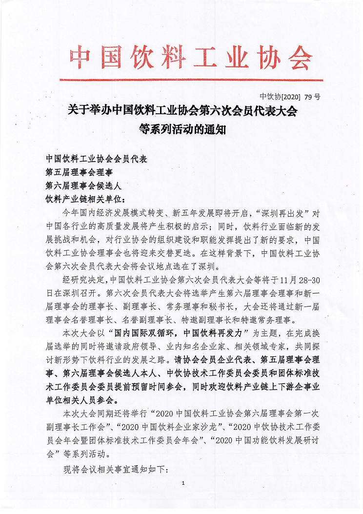饮料协会第六次会员代表大会等系列活动通知