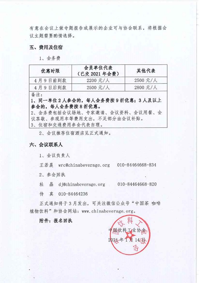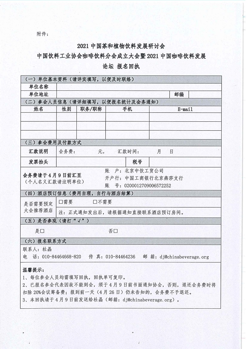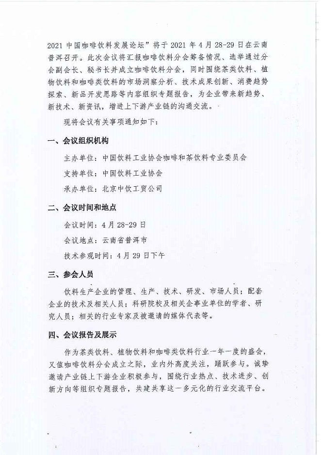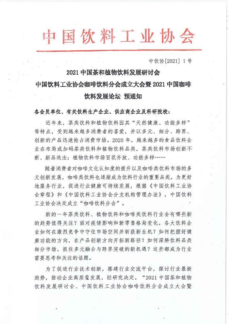 2021中国茶和植物饮料发展研讨会 中国饮料工业协会咖啡饮料分会成立大会暨2021中国咖啡饮料发展论坛 预通知