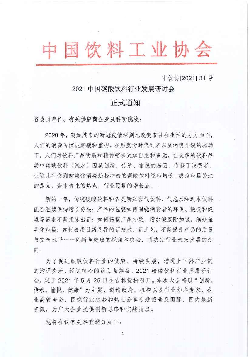2021中国碳酸饮料行业发展研讨会正式通知