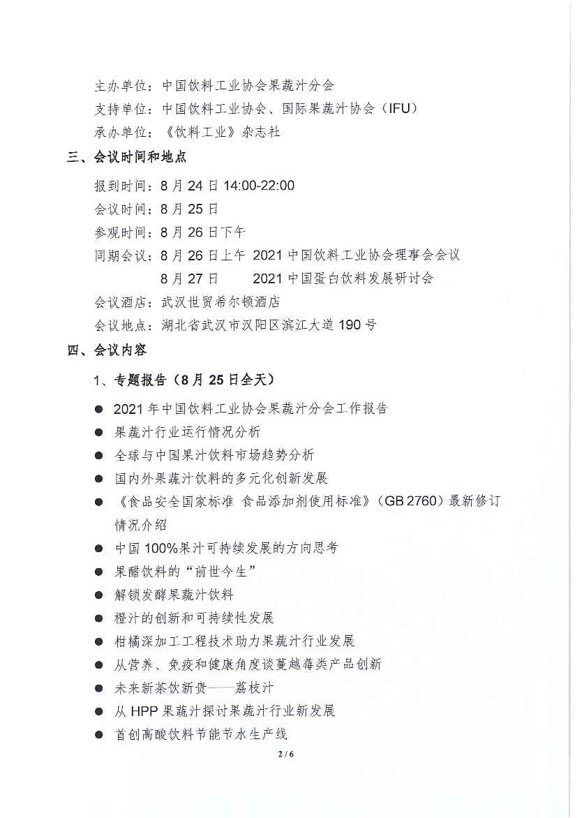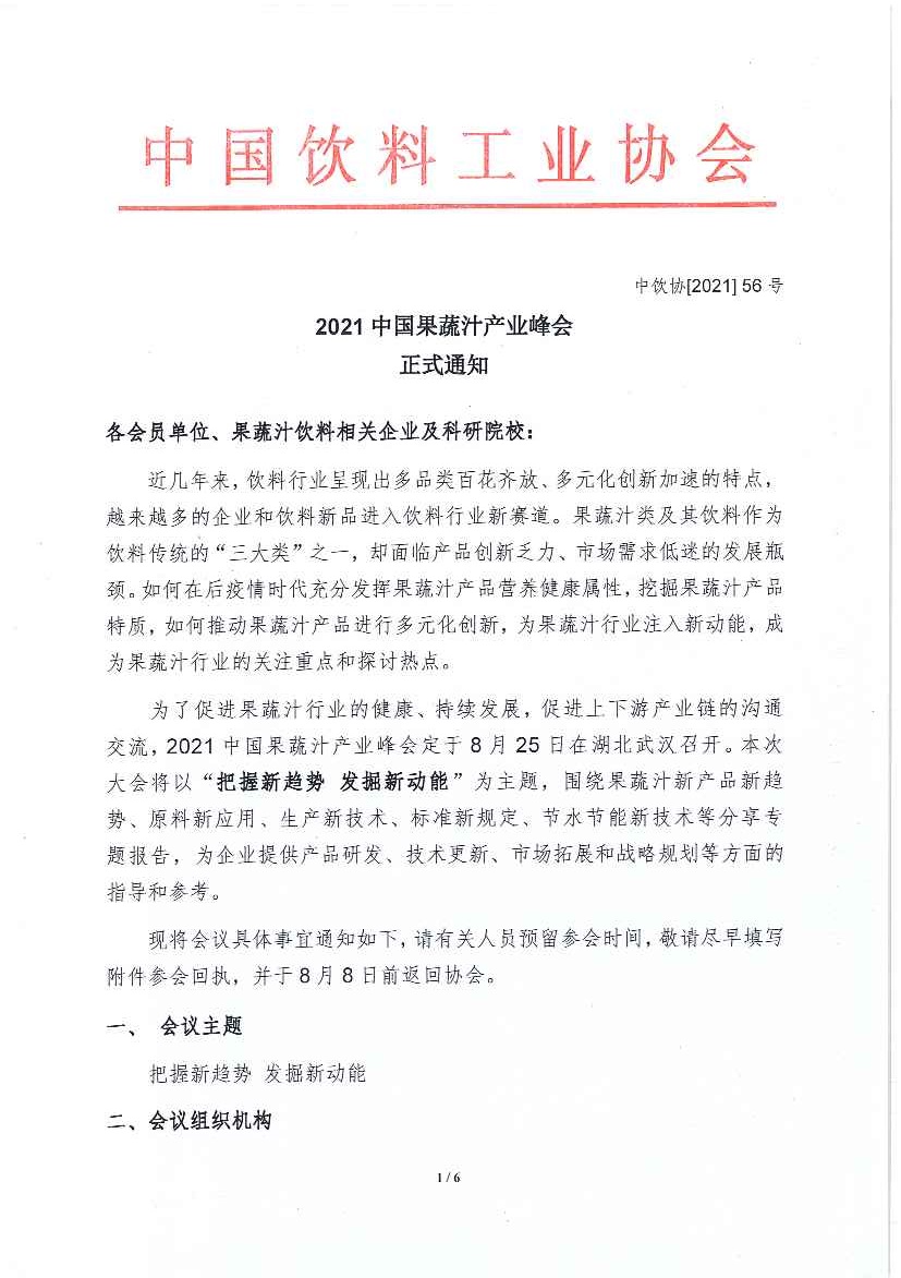2021中国果蔬汁产业峰会正式通知
