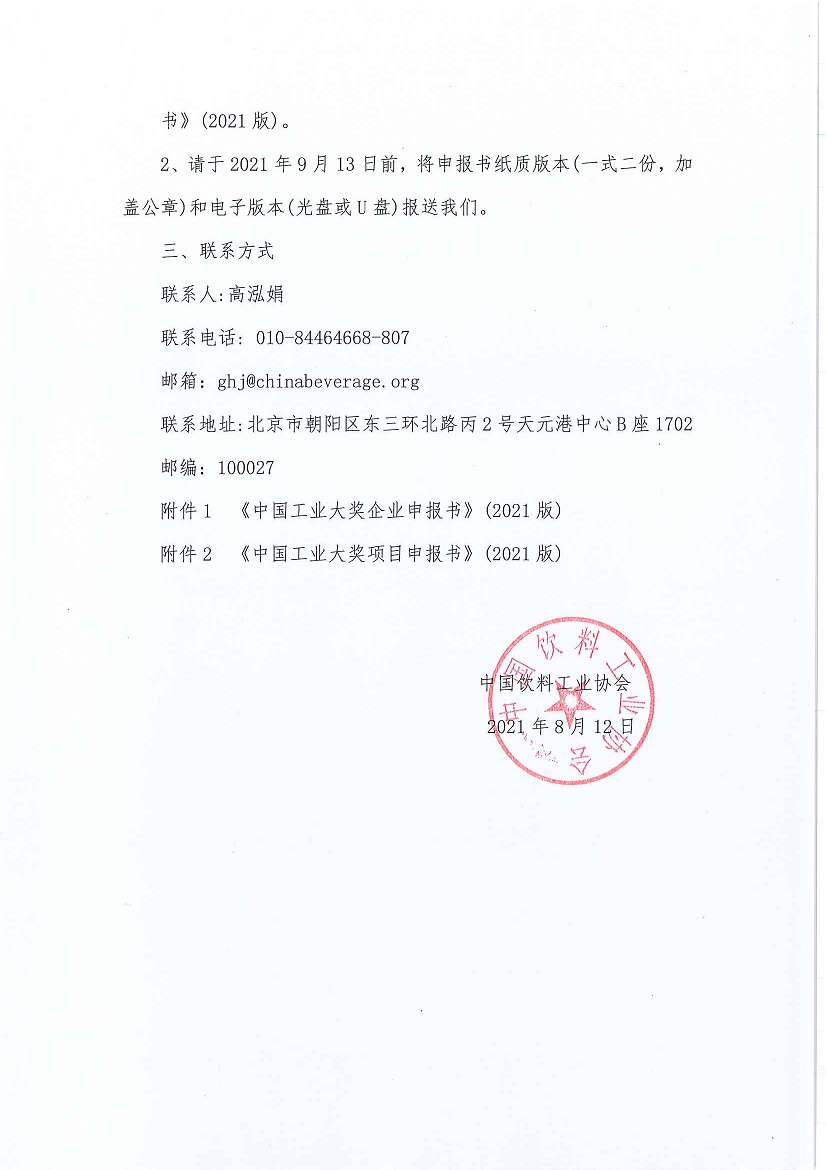 2021中国饮料工业协会理事会会议、2021中国果蔬汁产业峰会、2021中国蛋白饮料发展研讨会补充通知