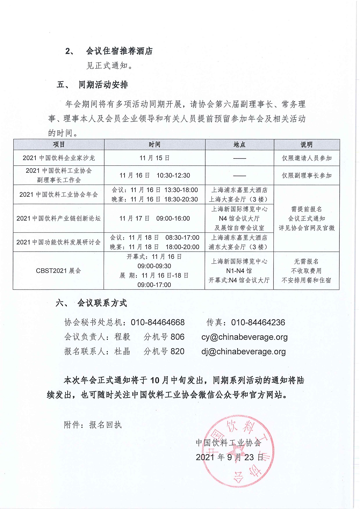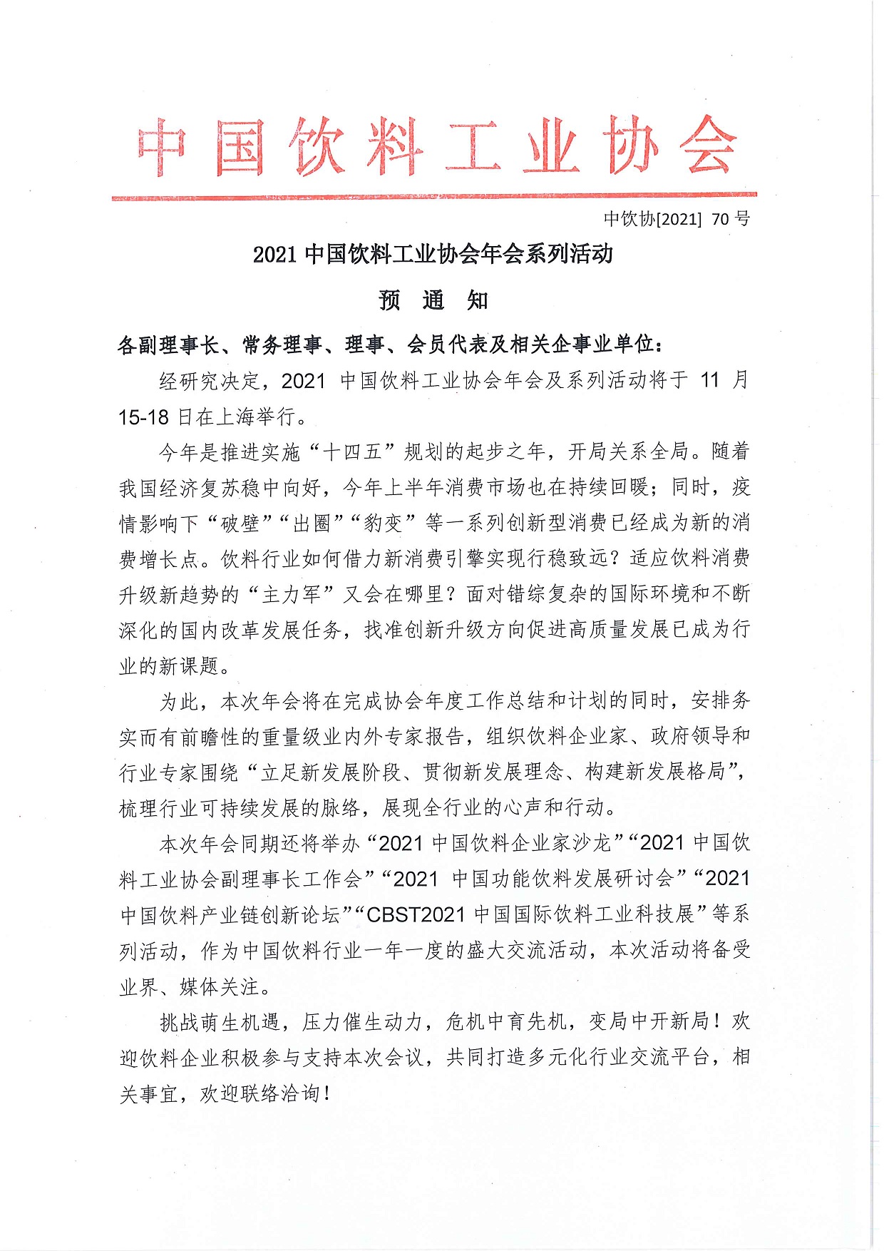 2021中国饮料工业协会理事会会议、2021中国果蔬汁产业峰会、2021中国蛋白饮料发展研讨会补充通知