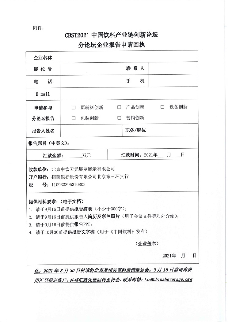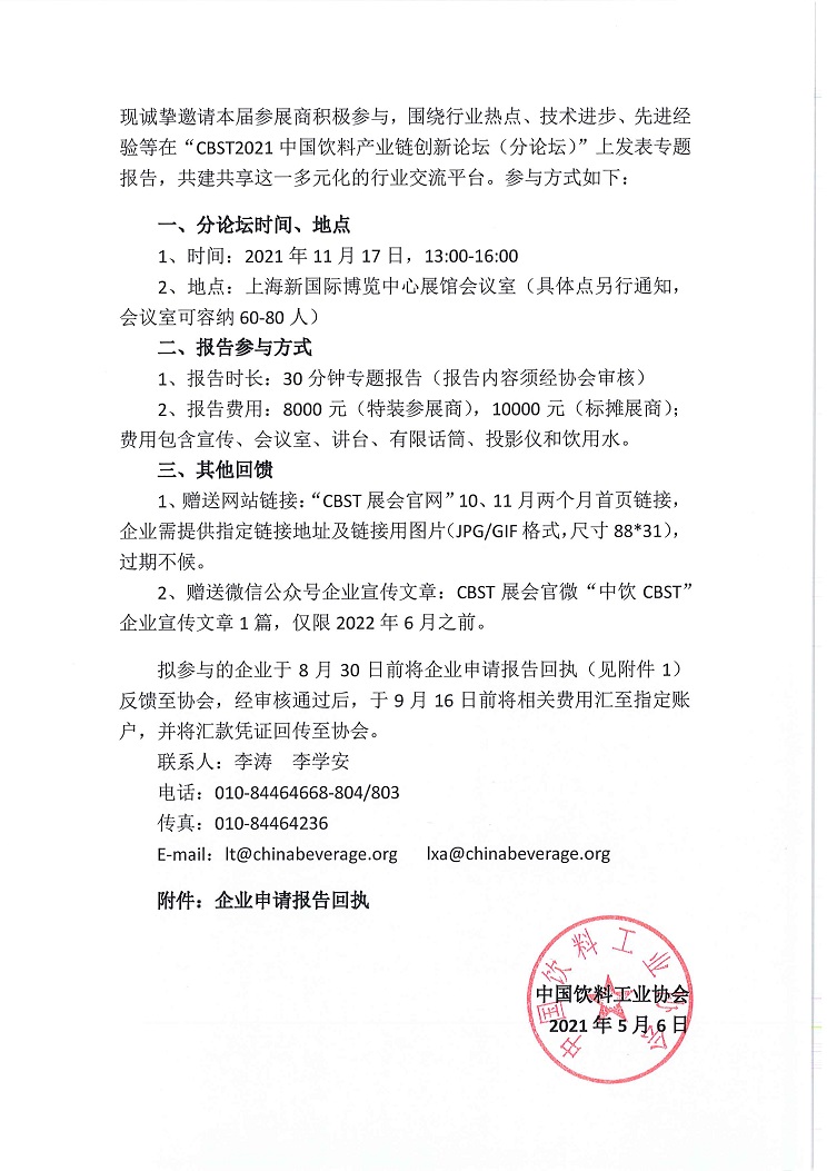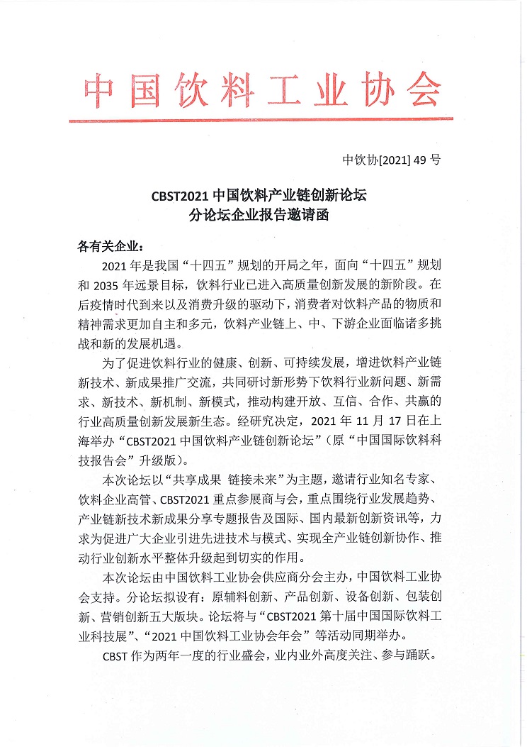 CBST2021中国饮料产业链创新论坛分论坛企业报告邀请函