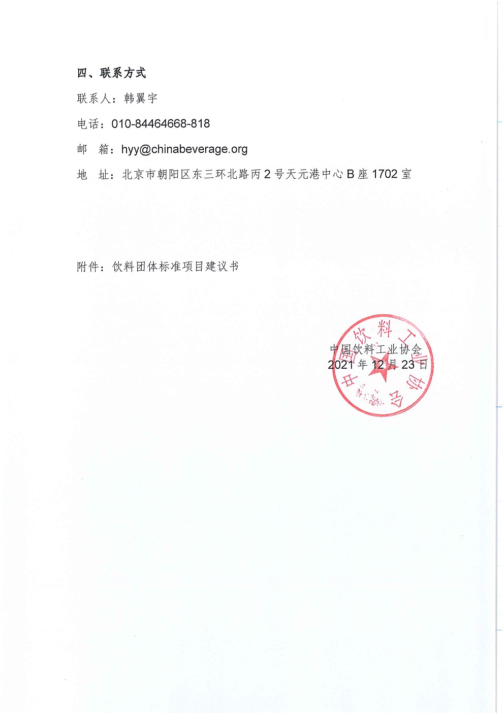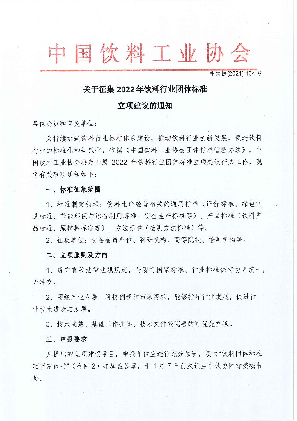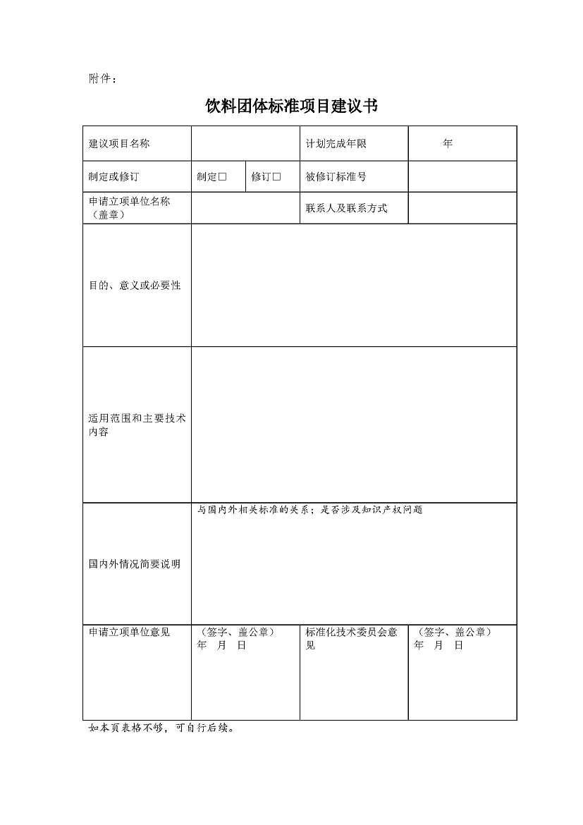 关于征集饮料行业团体标准计划项目的通知