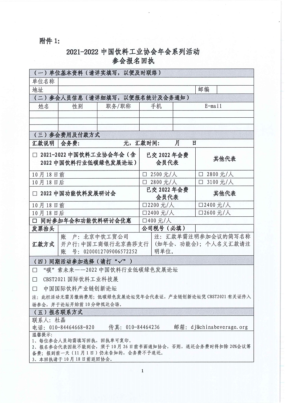2021-2022中国饮料工业协会年会系列活动会务事项变更通知