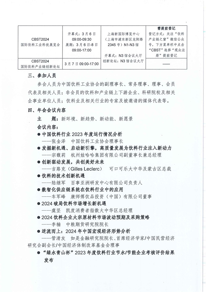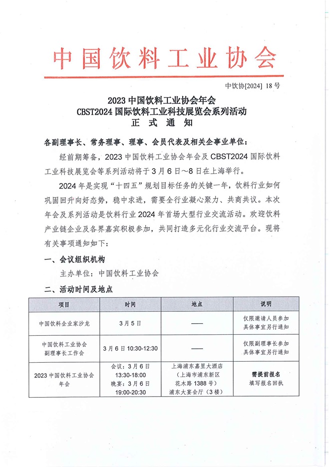 2023中国饮料工业协会年会、CBST2024国际饮料工业科技展览会系列活动正式通知