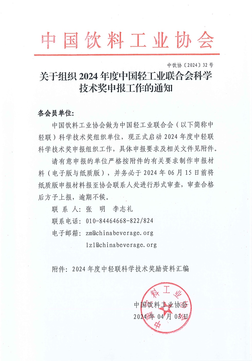 关于组织2024年度中国轻工业联合会科学技术奖申报工作的通知