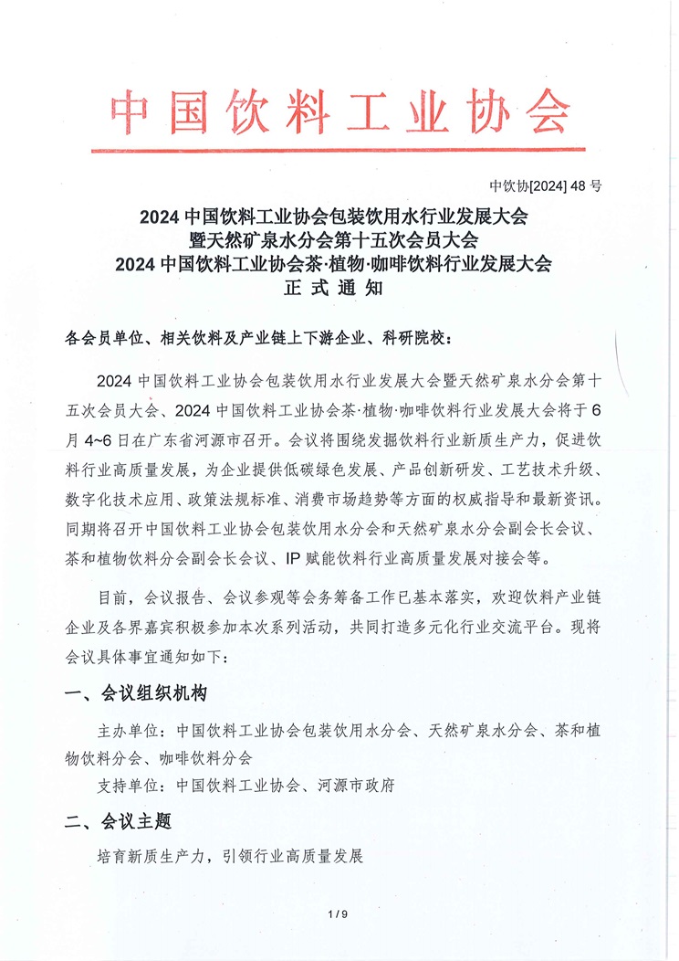 2024中国包装饮用水峰会 2024中国茶·植物·咖啡饮料发展研讨会正式通知