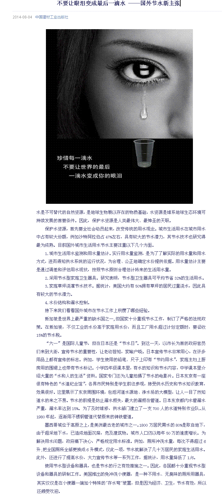 不要让眼泪变成最后一滴水 ——国外节水新主张