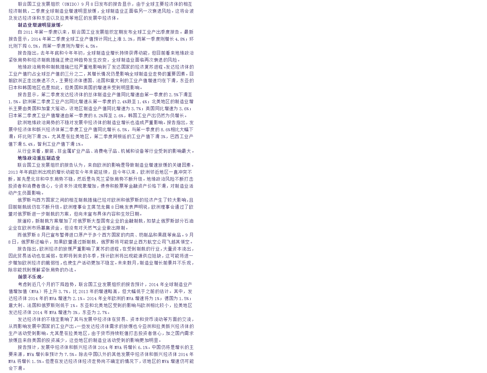 联合国报告预警制造业再衰退风险