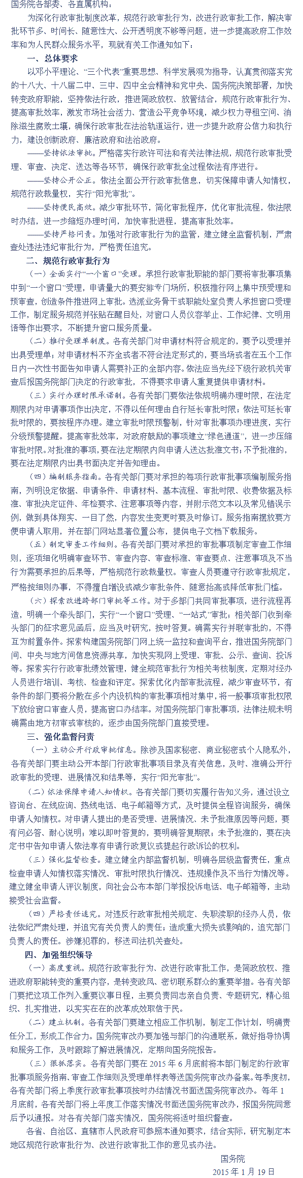 国务院关于规范国务院部门行政审批行为改进行政审批有关工作的通知