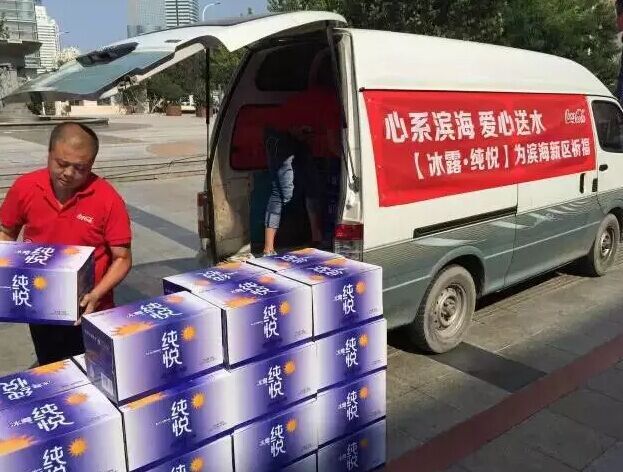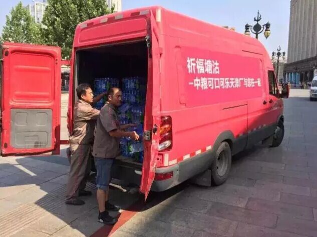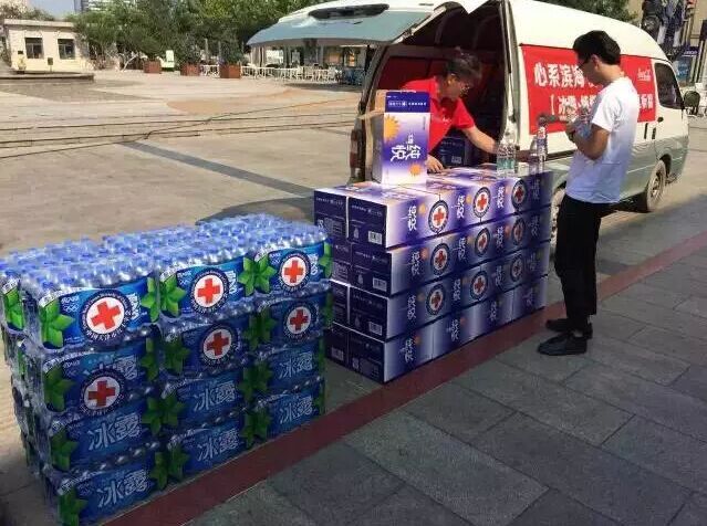接到消息第一时间,天津可口可乐饮料有限公司首批冰露水送至各救助站和献血站点。