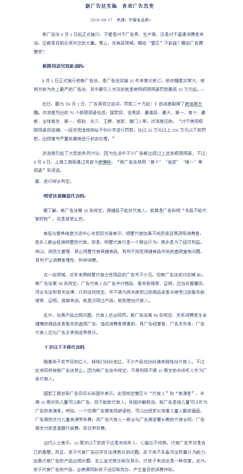 新广告法实施 食业广告思变