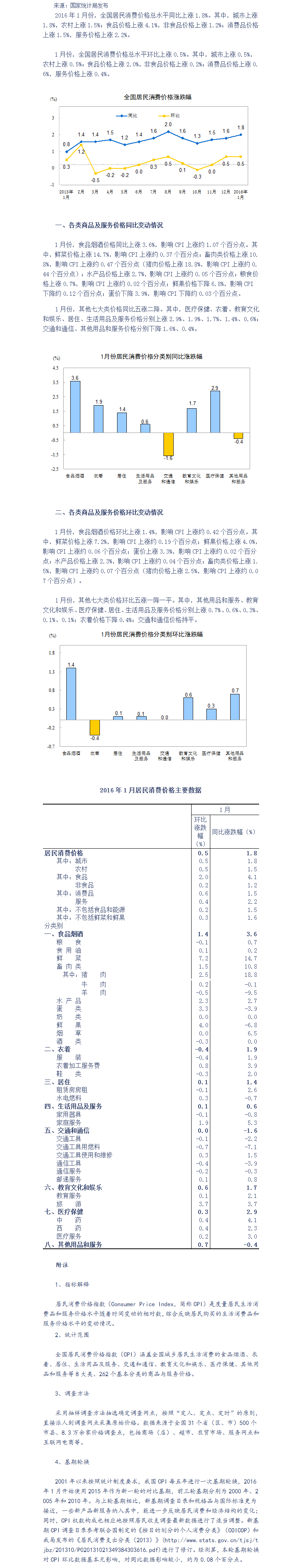 2016年1月份工业生产者出厂价格同比下降5.3%