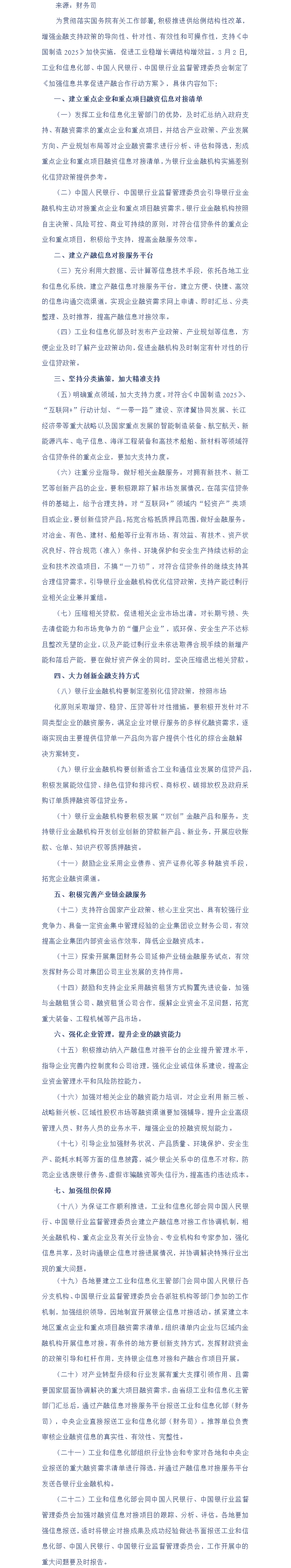 三部委联合印发《加强信息共享 促进产融合作行动方案》