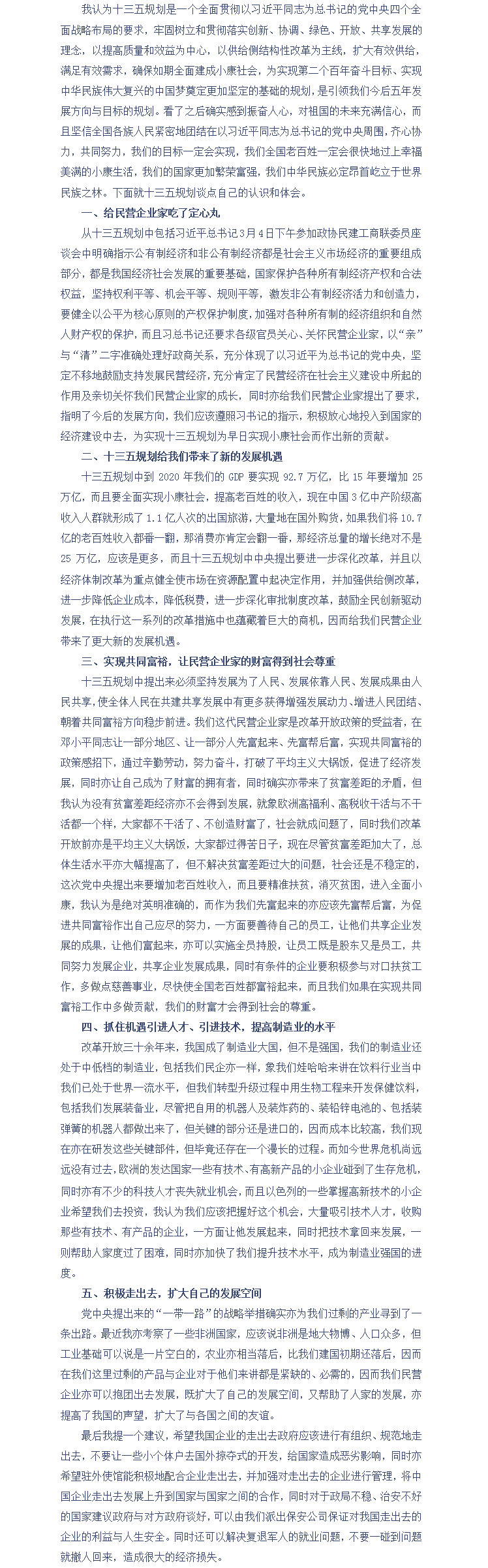 宗庆后:十三五规划给民营经济带来了新的发展机遇