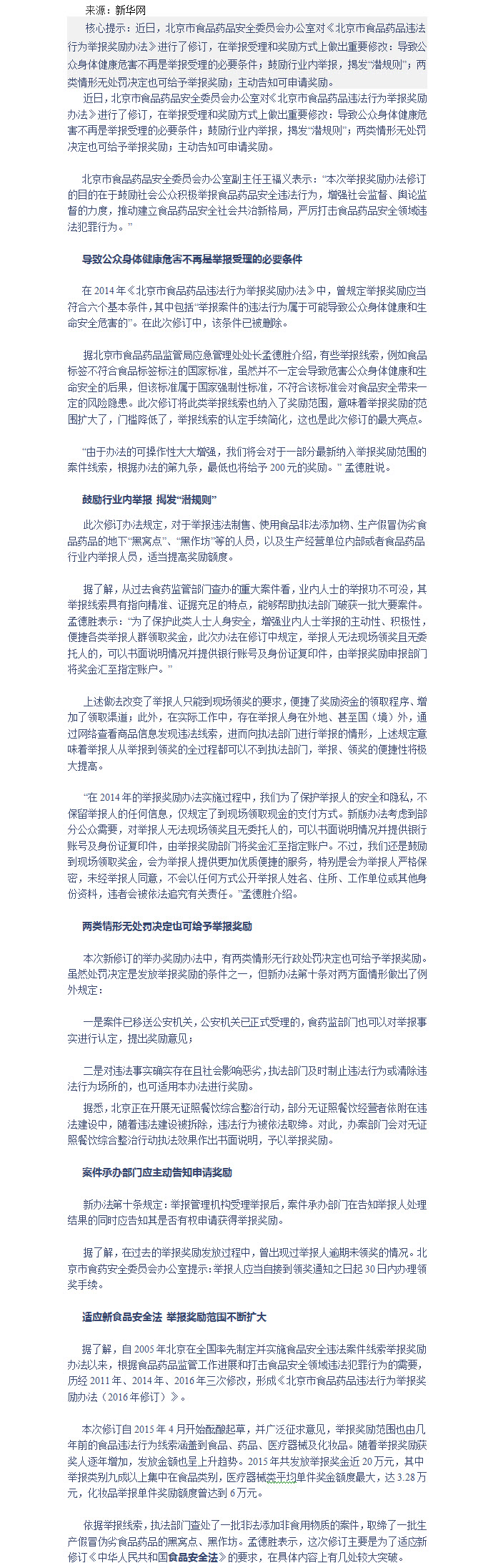 北京修订食药违法举报奖励办法 奖励范围扩大门槛降低